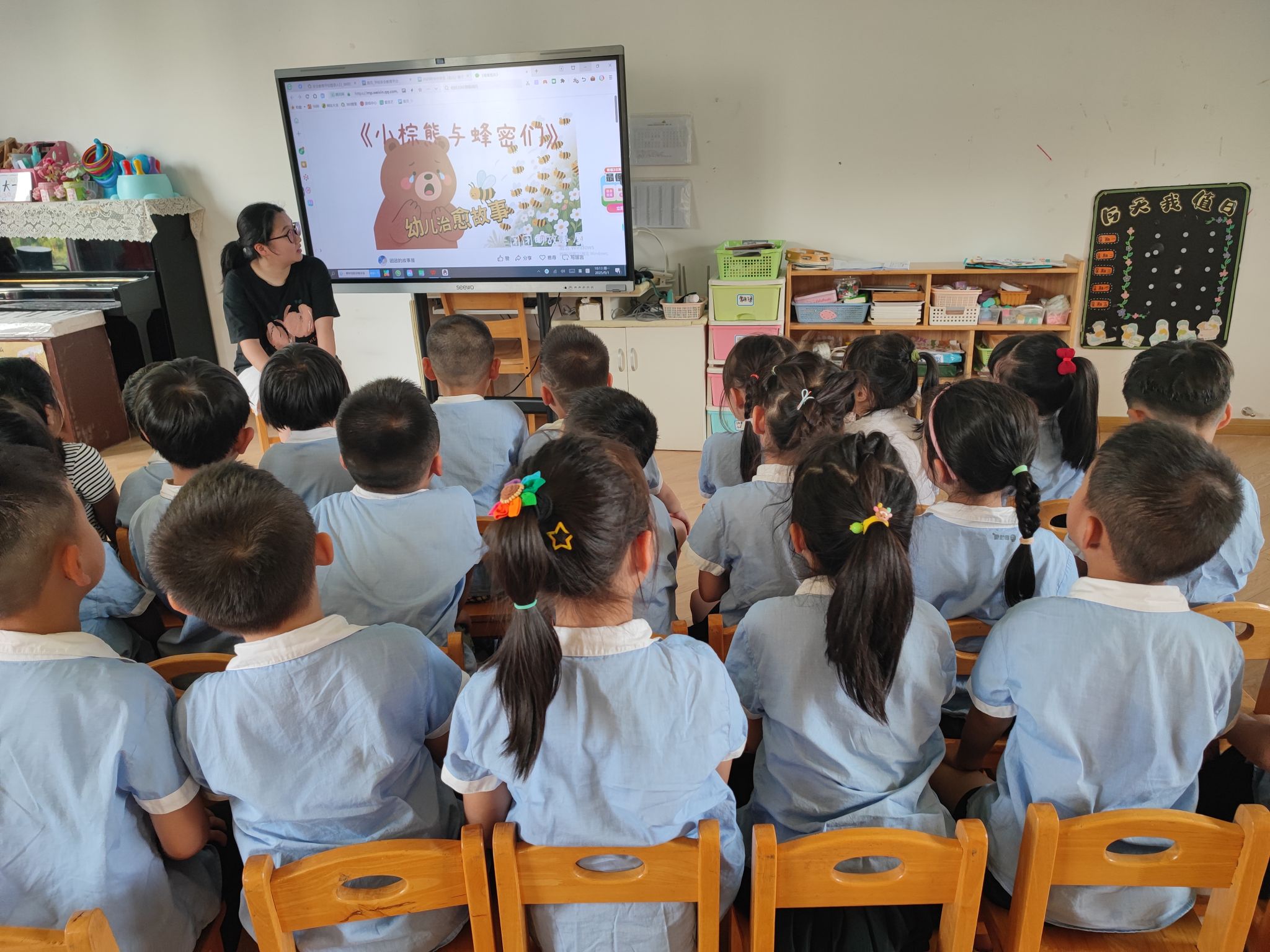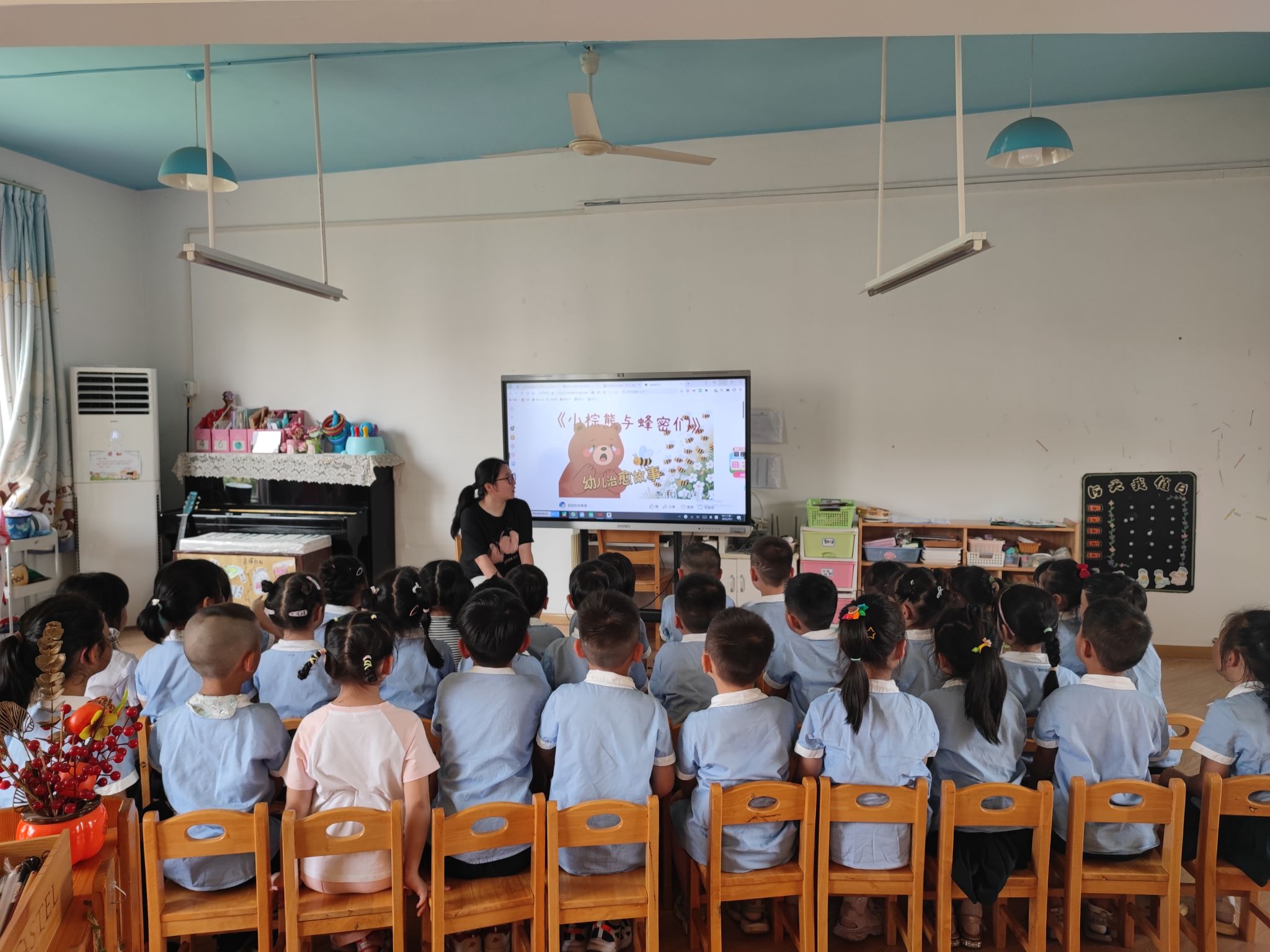 活动中,老师通过开展绘本故事活动《蜂蜜朋友》,把心理健康教育渗透到教育活动中,用温柔的故事为小朋友种下四颗闪闪发光的“道理种子”。