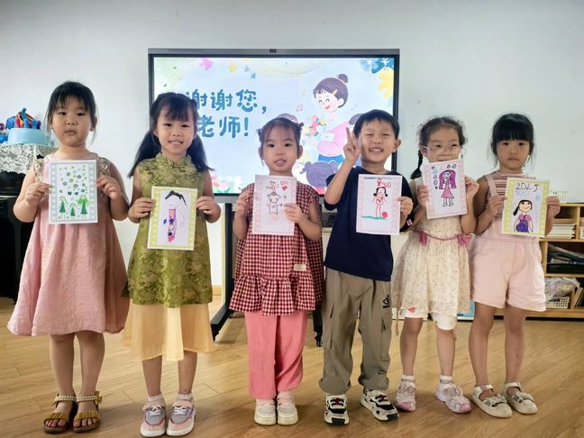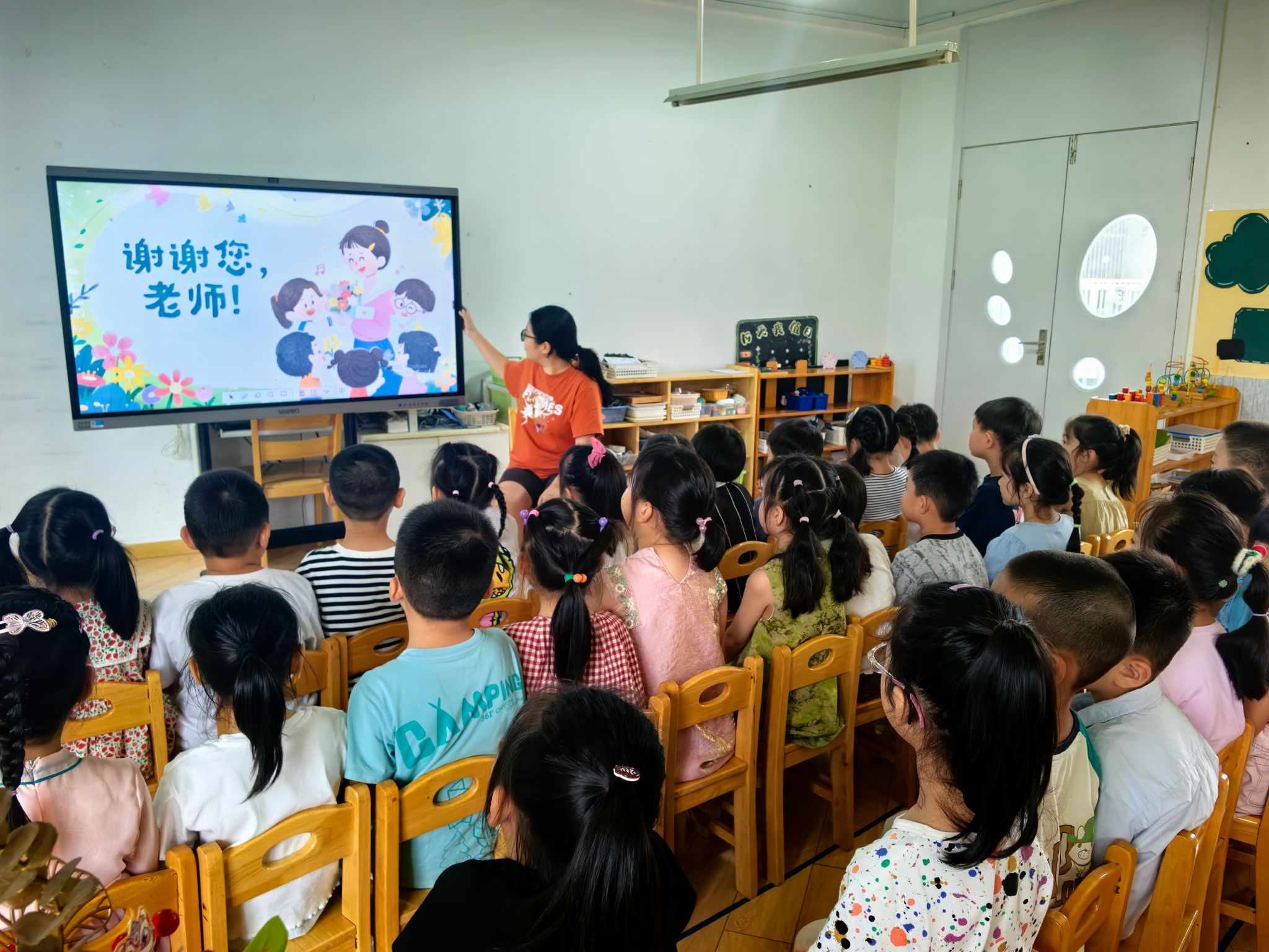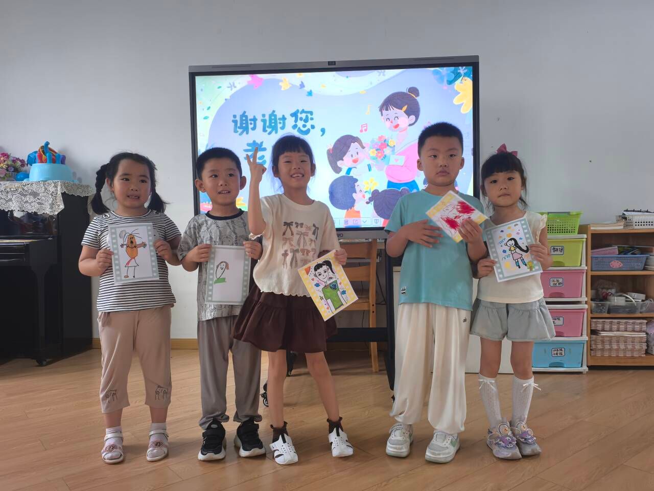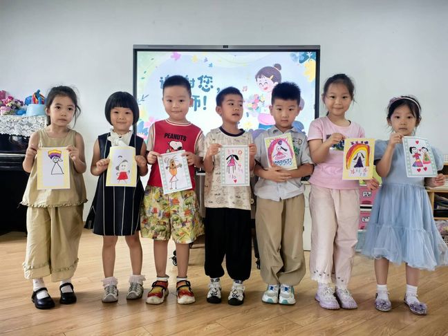 在这充满收获和感恩的季节里,教师节带着祝福与敬意,如约而至,孩子们充满爱意,一起为老师庆祝这个属于她们的节日,活动中,老师通过生动有趣的故事和精彩的图片,向小朋友们介绍了教师节的由来,让孩子们懂得老师的辛勤付出,在他们幼小的心灵中播下尊师重道的种子。孩子们用他们那一双双稚嫩的小手,满怀深情地画一画自己心目中可爱的老师,他们专注的眼神里闪烁着对老师的敬爱,小小的脸蛋上洋溢着幸福的笑容。那份认真和用心让人感动,表达了他们对老师深深的敬爱和感激之情。