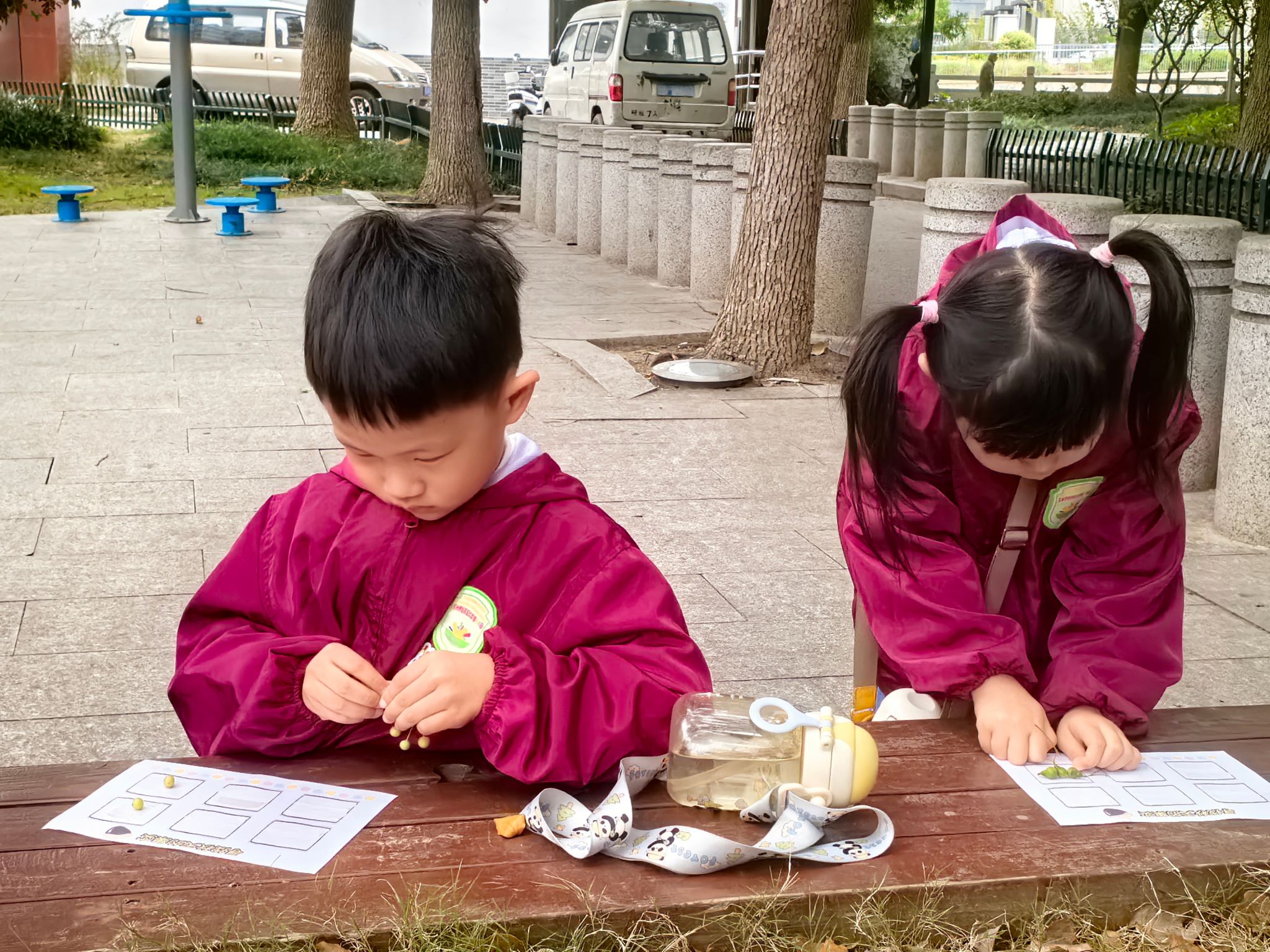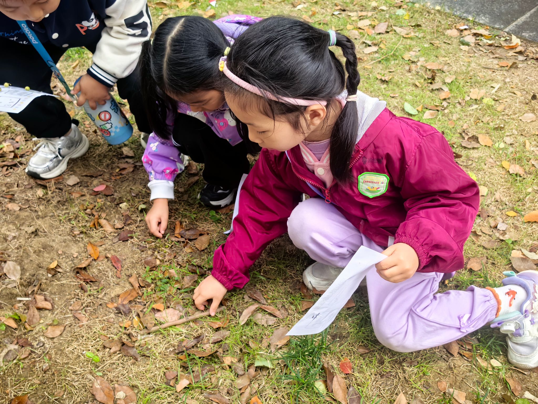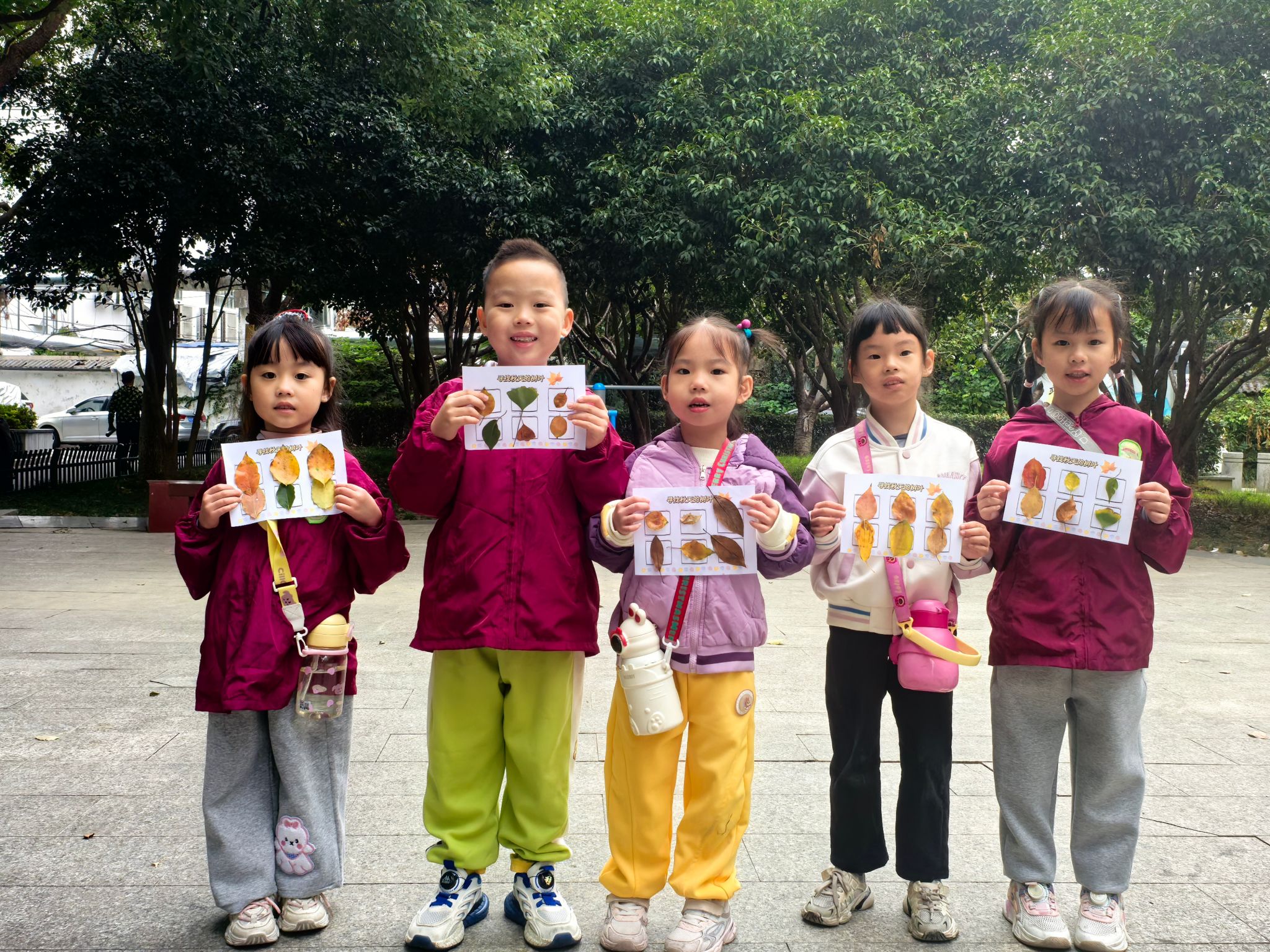 走进口袋公园,便走进了秋天的故事里。孩子们是天生的探险家,弯腰拾起一片落叶的斑驳,轻轻触碰一棵大树的年轮,好奇追踪一只昆虫的轨迹。大自然是最慷慨的老师,它无声地传授着关于生命、季节与美的奥秘。沿途,孩子们像一群快乐的小鸟,叽叽喳喳地讨论着看到的风景:飘落的黄叶、忙碌的小蚂蚁、天空飞过的小鸟……世界在他们眼中,充满了新奇与美好。最富创意的环节来了!孩子们分组行动,寻找秋天的树叶和果实完成收集任务,在活动中,他们学会了观察,懂得了协作,更收获了无尽的快乐。