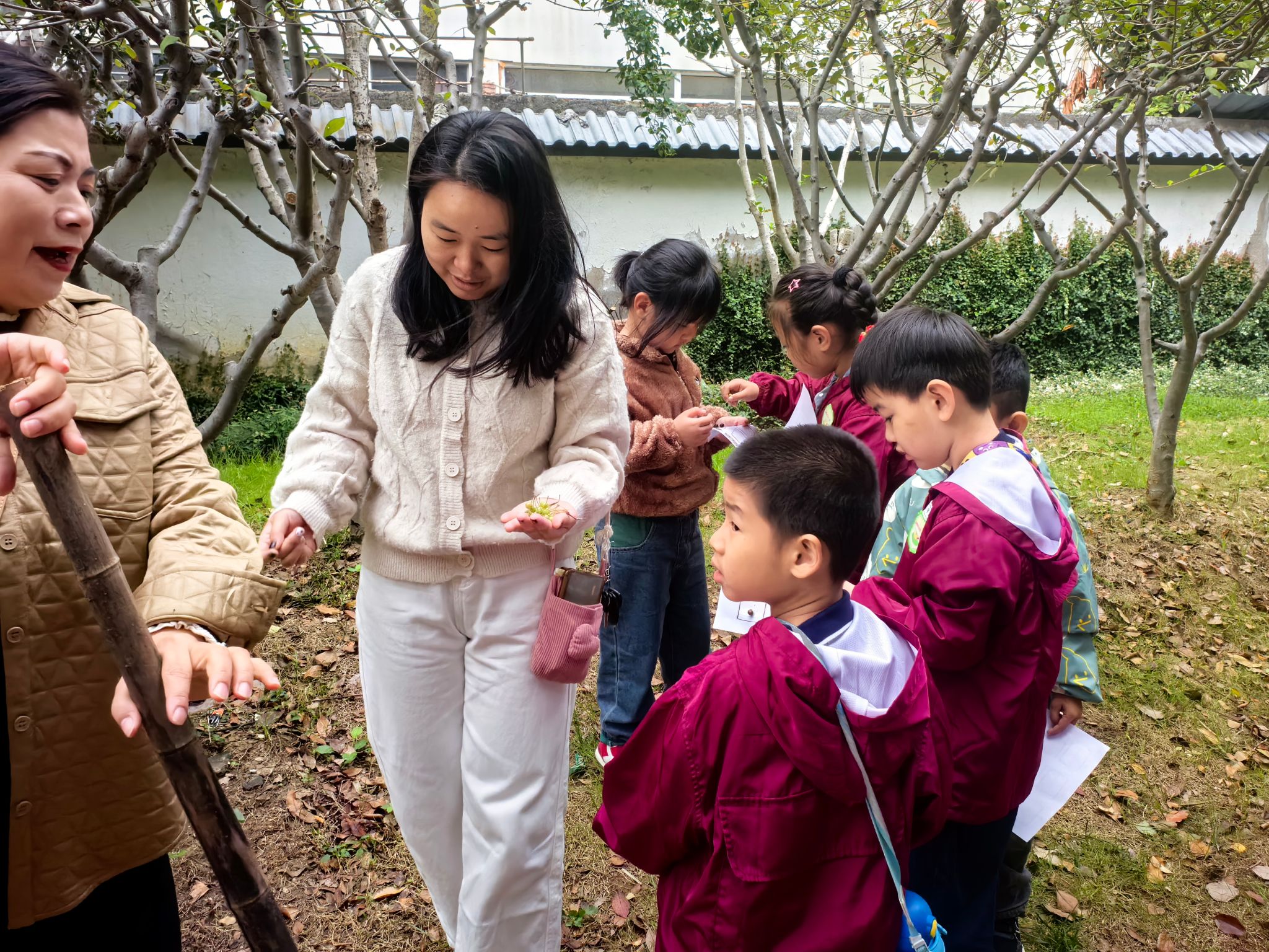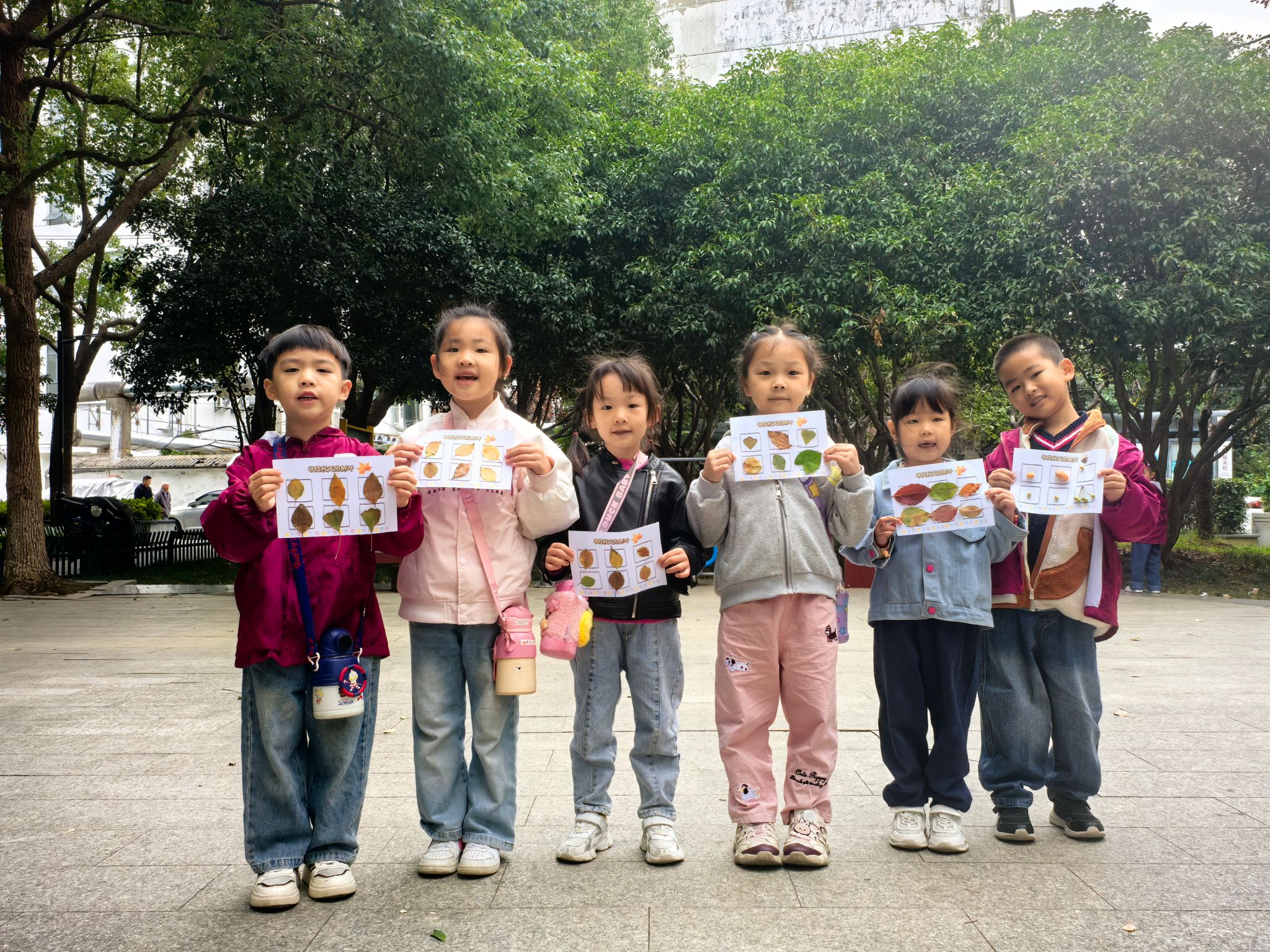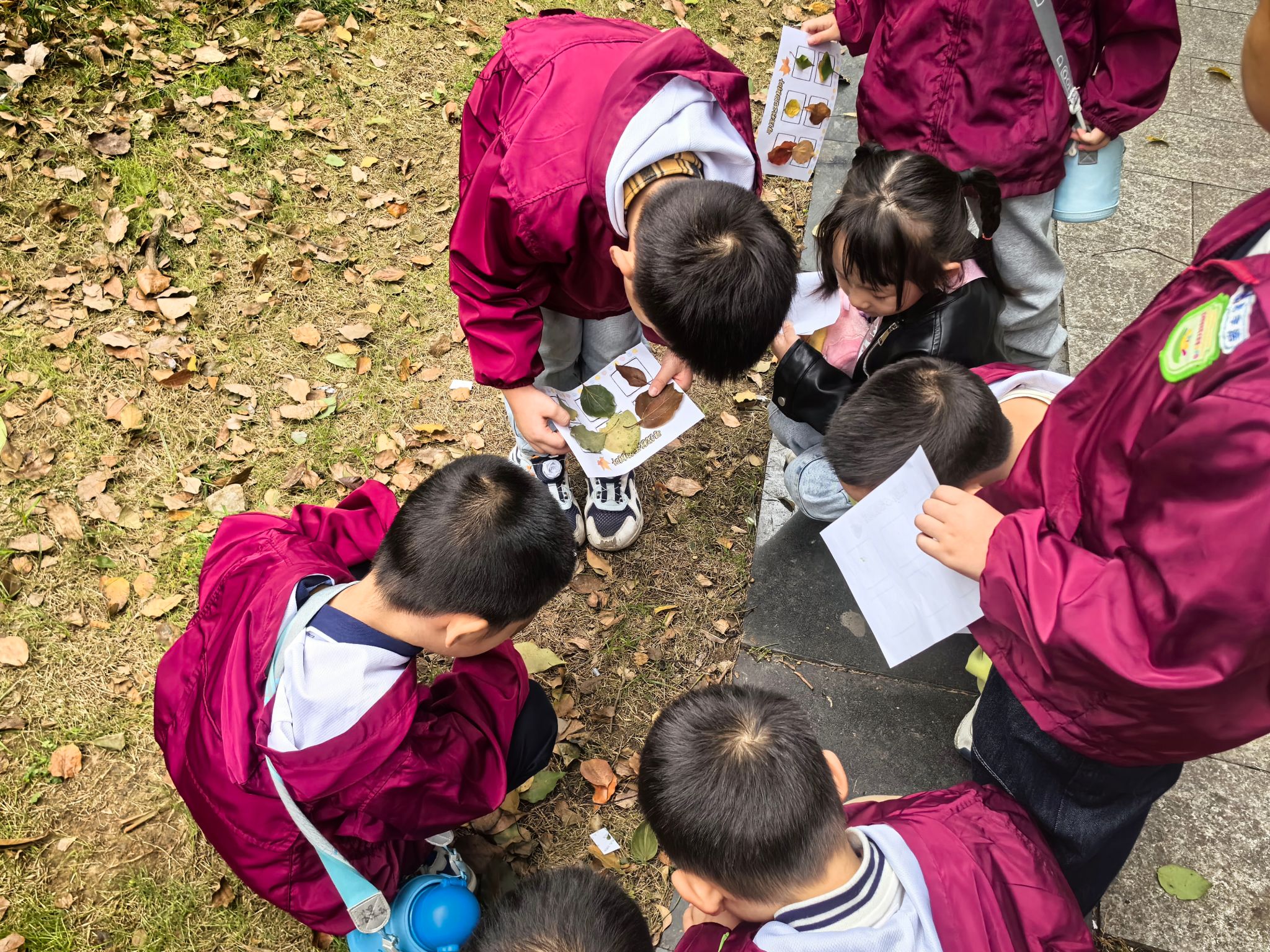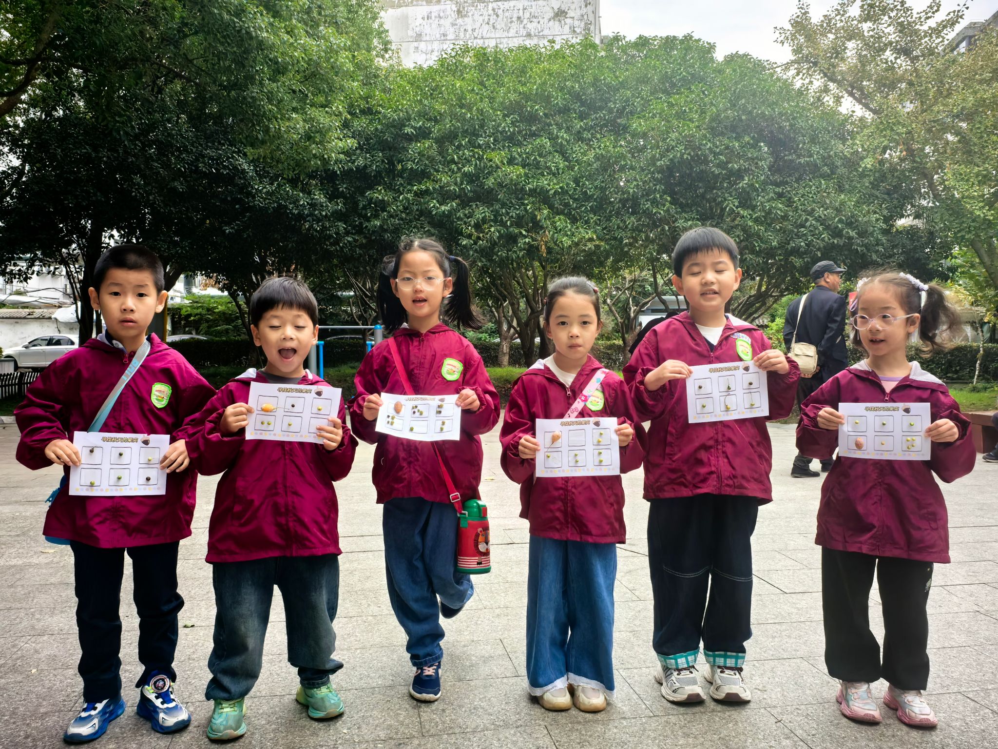 走进口袋公园,便走进了秋天的故事里。孩子们是天生的探险家,弯腰拾起一片落叶的斑驳,轻轻触碰一棵大树的年轮,好奇追踪一只昆虫的轨迹。大自然是最慷慨的老师,它无声地传授着关于生命、季节与美的奥秘。沿途,孩子们像一群快乐的小鸟,叽叽喳喳地讨论着看到的风景:飘落的黄叶、忙碌的小蚂蚁、天空飞过的小鸟……世界在他们眼中,充满了新奇与美好。最富创意的环节来了!孩子们分组行动,寻找秋天的树叶和果实完成收集任务,在活动中,他们学会了观察,懂得了协作,更收获了无尽的快乐。