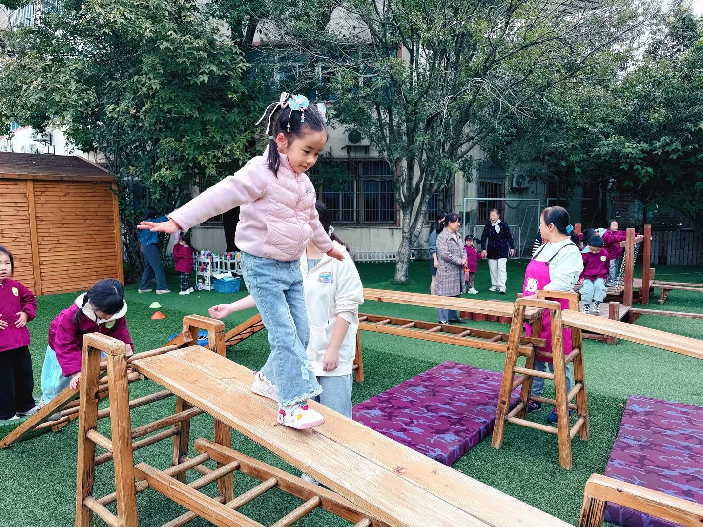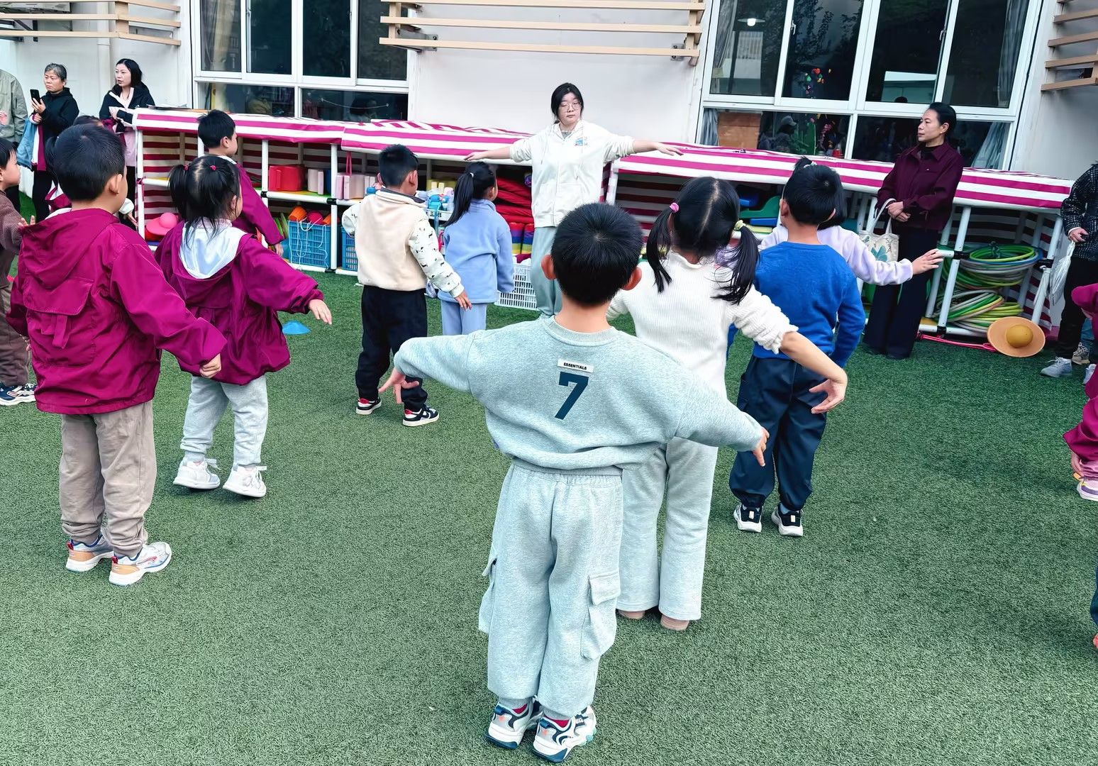 晨间锻炼中,爸爸妈妈们看到了孩子们积极参与、大胆表现的模样。稚嫩的声音、专注的样子不时赢得爸爸妈妈们赞赏的眼光。在欢快的音乐声中,孩子们浑身洋溢着蓬勃的朝气与活力。孩子在幼儿园里“学什么”、“怎么学”,一直是爸爸妈妈们好奇的问题。我们老师根据幼儿的年龄特点,以幼儿为主体,以游戏为媒介,创设了游戏化的教学氛围,积极引导孩子们在活动中探索操作、倾听表达,爸爸妈妈们真实地感受着我们的专注和多维成长。
