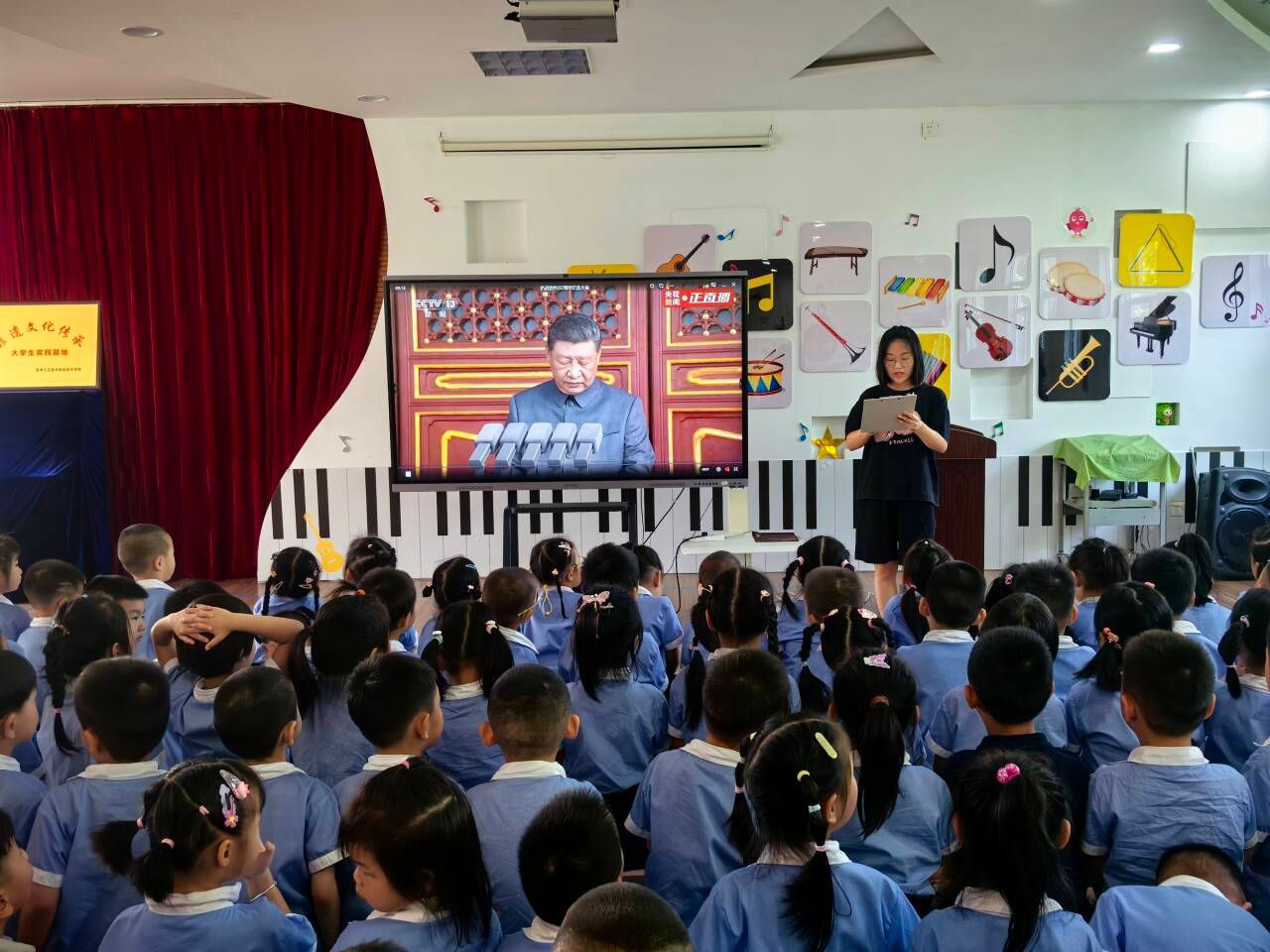 9月3日上午,幼儿园组织大中班孩子观看了一场盛大的阅兵仪式——挺拔的军姿、整齐的步伐、精良的装备,通过这样一种庄严的仪式,向英雄致敬,向世界展示中国的力量与和平发展的决心。孩子们还和爸爸妈妈一起共同制作宣传海报,画下对美好未来的想象,从小根植爱国的情怀。