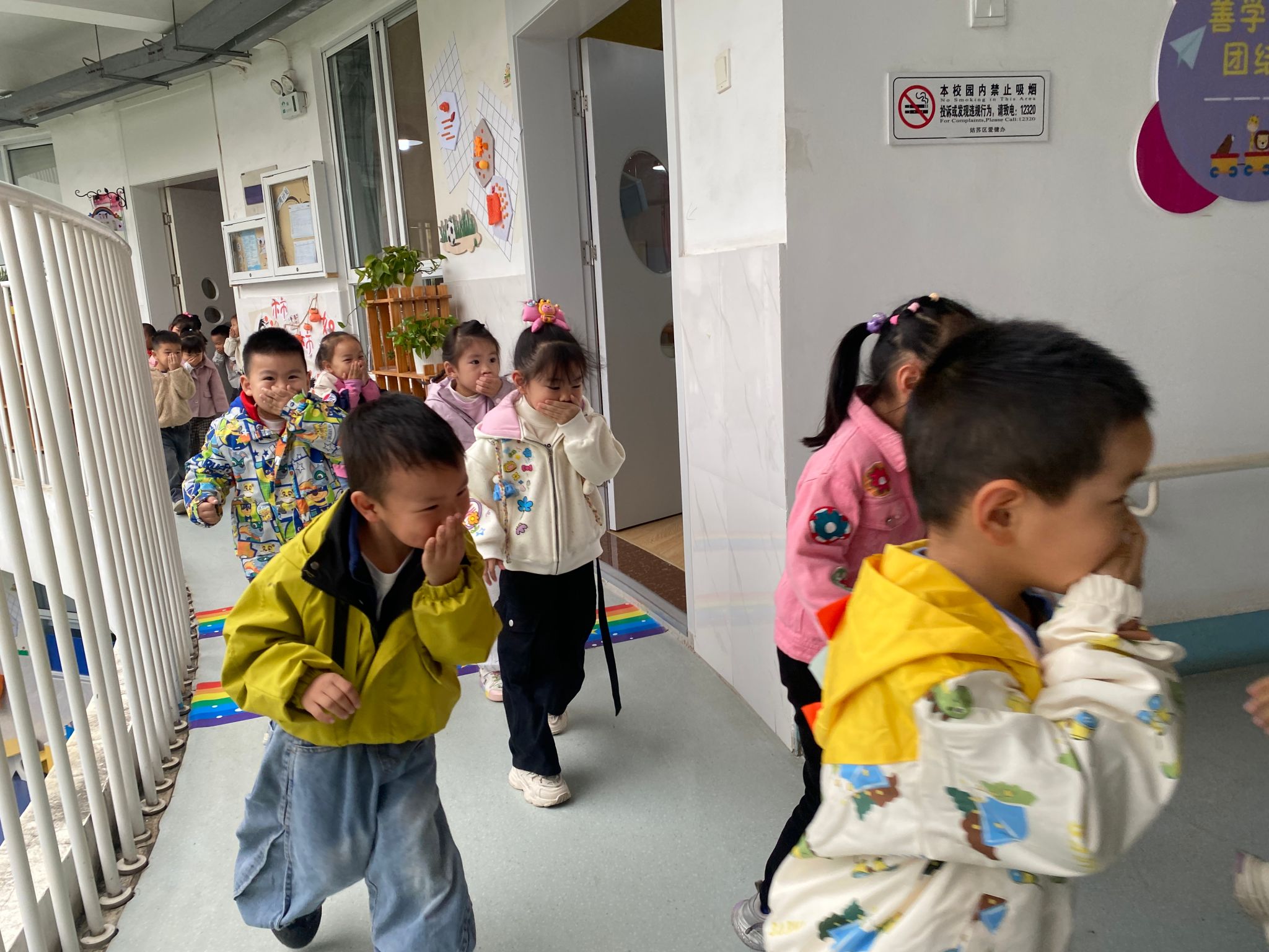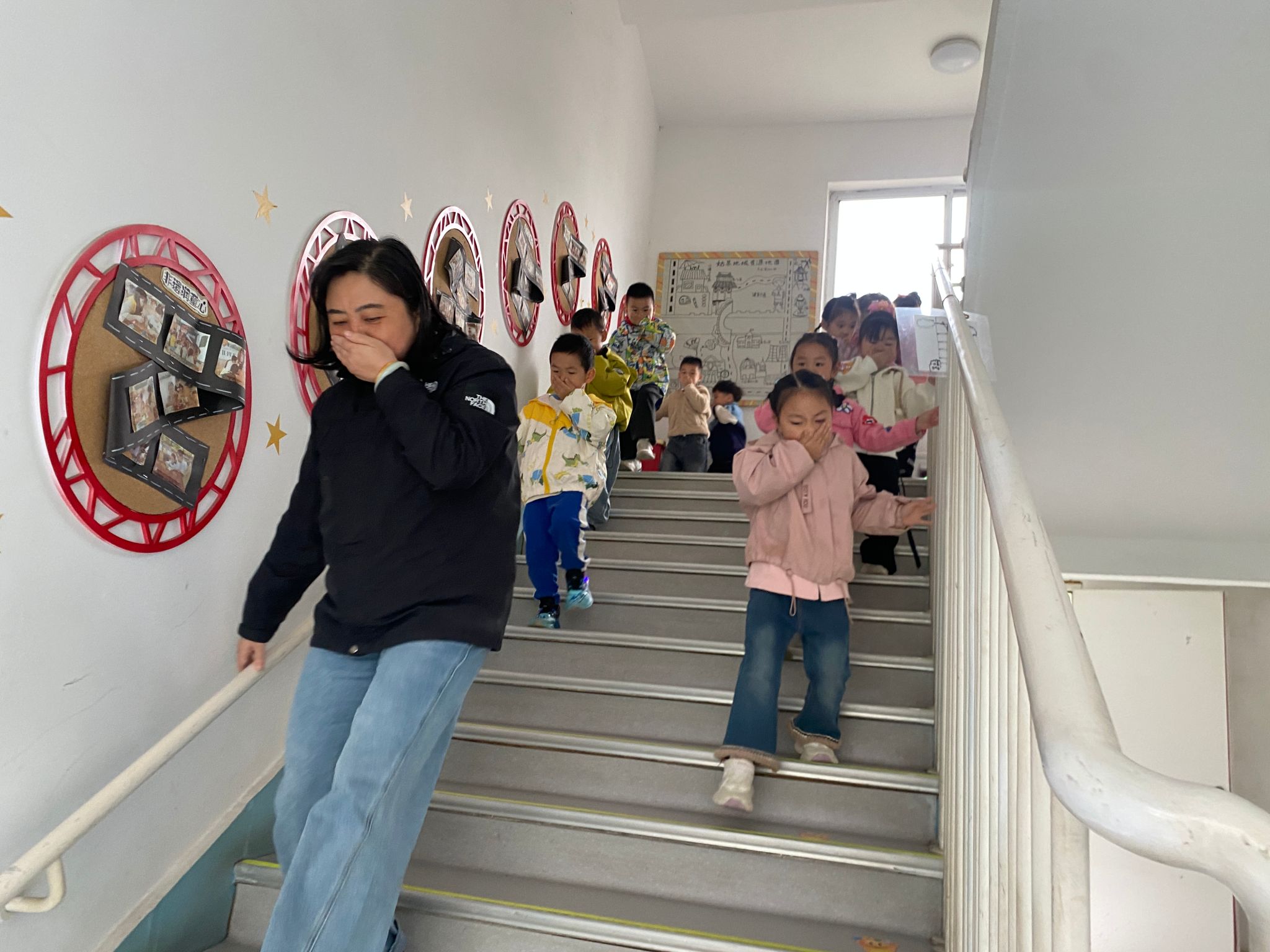 “呜 —— 呜 —— 呜 ——” 上午 10点整,一阵急促的消防警报声划破了幼儿园的宁静。没有惊慌失措,没有哭闹混乱,宝贝们在老师的带领下,用湿毛巾捂住口鼻,弯腰低头,沿着预定路线快速有序地撤离…… 一场紧张而有序的消防演练活动正式拉开帷幕! 实战演练:冷静撤离不慌乱“嘀嘀嘀 ——”消防警报声突然响起,演练正式开始!老师们立刻停止活动,沉着冷静地组织宝贝们。“宝贝们,不要怕,跟着老师一起走!”“用手捂住嘴巴和鼻子,弯腰前进!”宝贝们牢记老师教的方法,动作规范又迅速。有的宝贝还会主动提醒身边的小伙伴“慢点走不要推挤”从教室到操场安全区域,整个撤离过程紧张有序、不慌不忙成功撤离到指定地点。