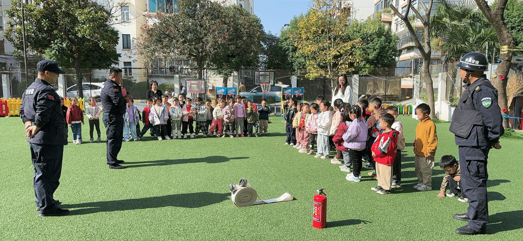 趣味体验:争当消防小卫士 撤离演练结束后,最受宝贝们欢迎的 “消防体验环节” 来啦!消防员叔叔带着真实的灭火器、消防水带来到现场,为宝贝们进行实操演示。“大家看,使用灭火器时,先提起灭火器,拔掉保险销,一手握住喷管,一手压下手柄,对准火焰根部喷射……” 火焰被成功扑灭,宝贝们发出了阵阵惊叹声。