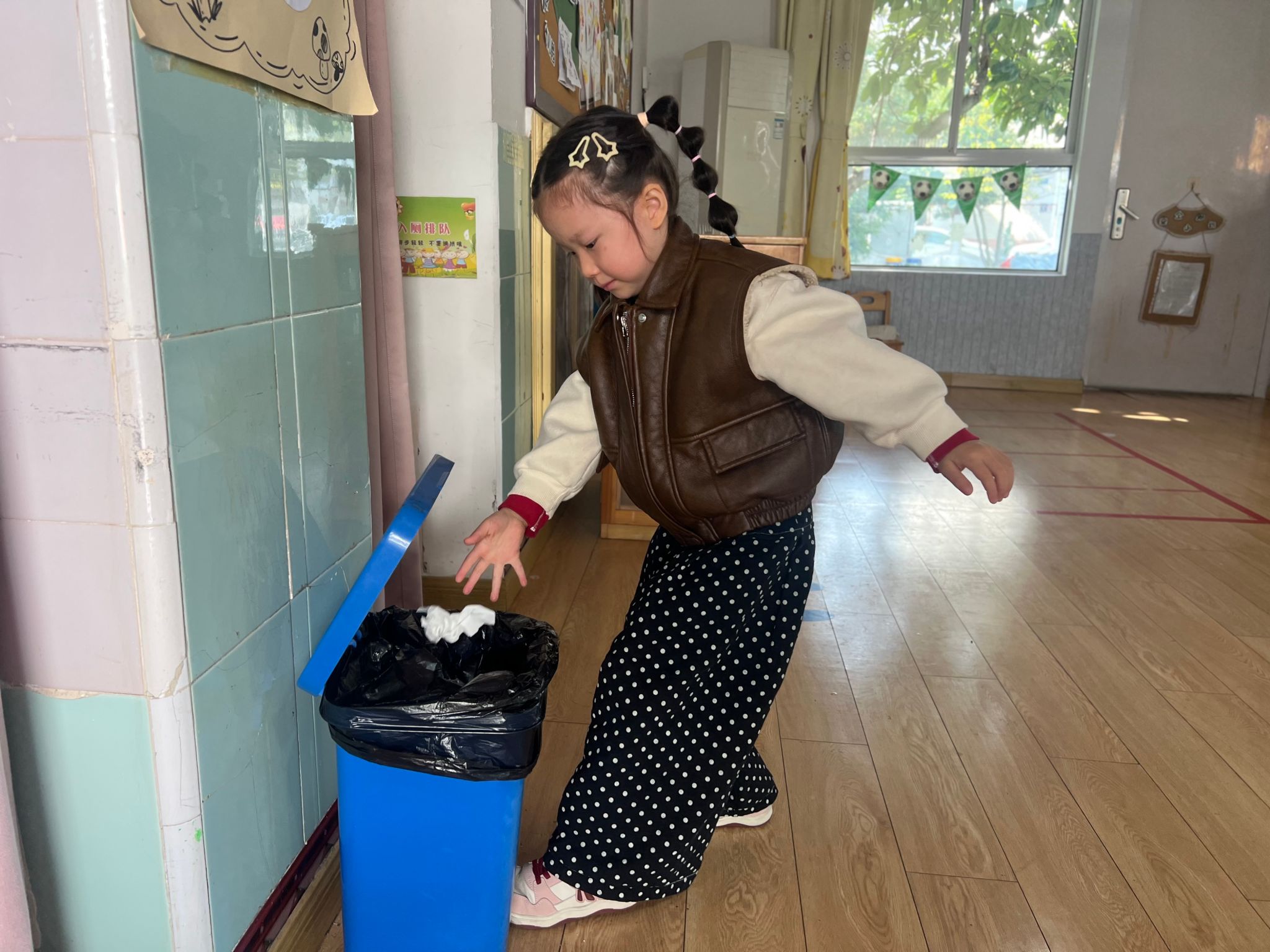 实际操作,对幼儿园现有垃圾进行现场分类,直观的感受让孩子记忆深刻。初步产生对身边的垃圾进行分类的意识。