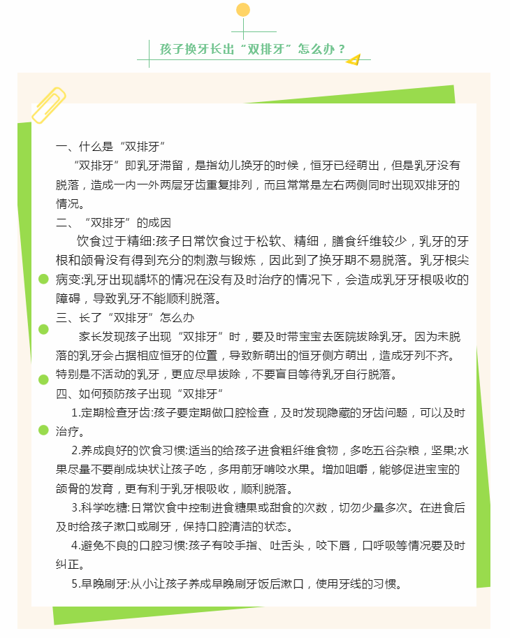 【育儿知识】孩子换牙长出“双排牙”怎么办?