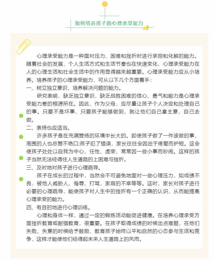 【育儿知识】如何培养孩子的心理承受能力