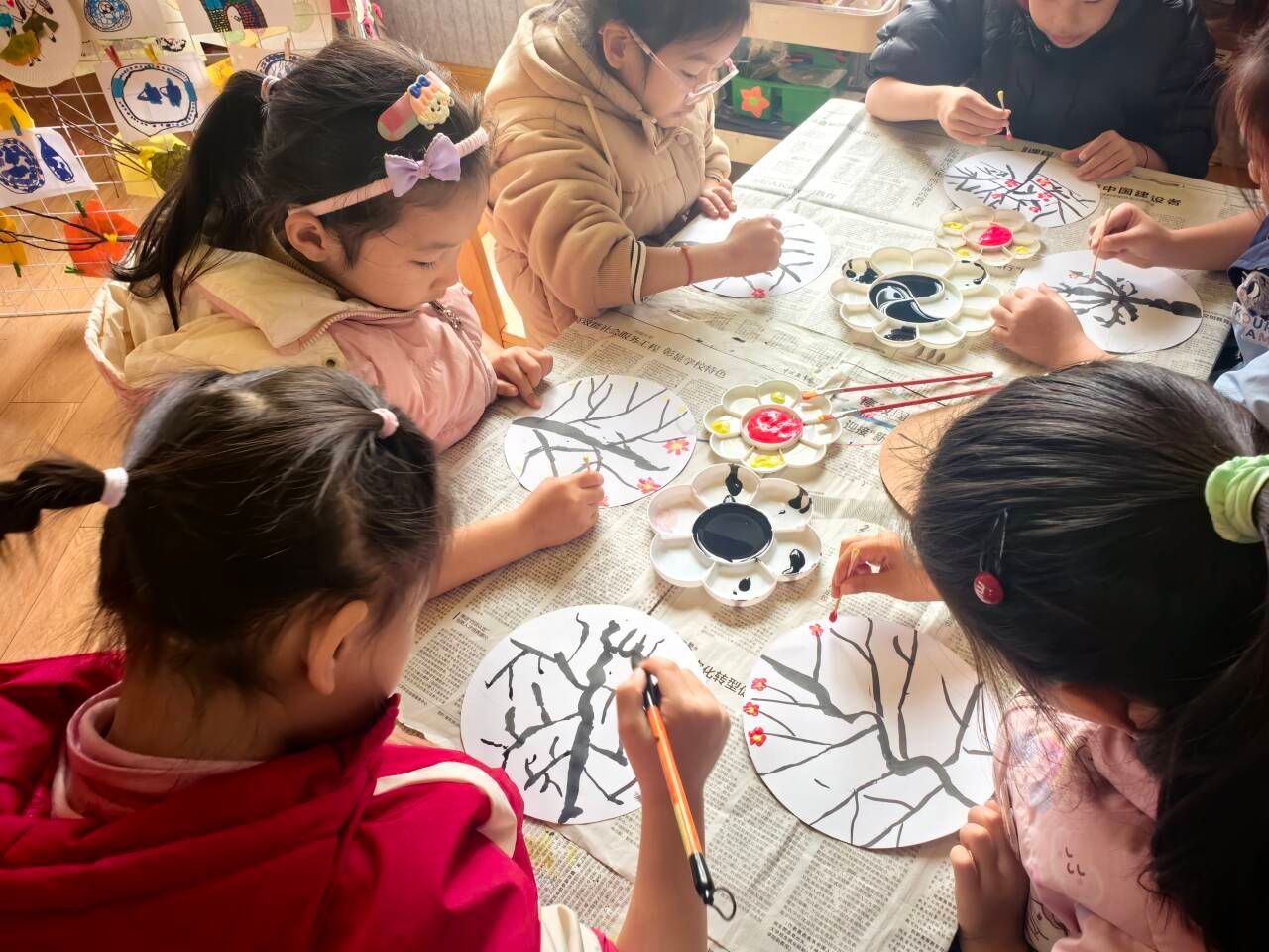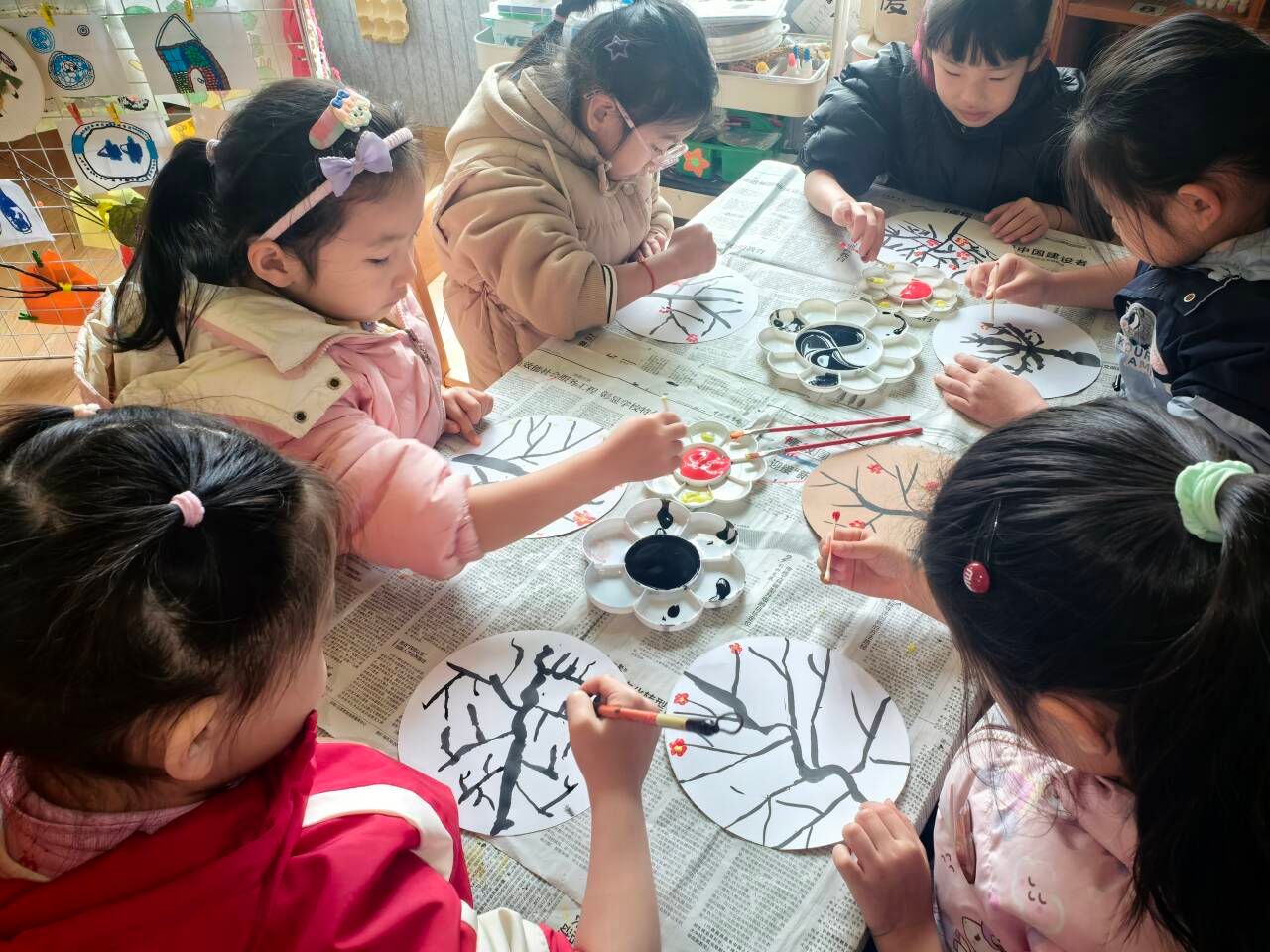 为了留住美丽的腊梅,孩子们饶有兴味地准备起来,用墨水吹画、创意作画等形式。最终将梅花呈现得多姿多彩,而宝贝们也通过此次活动了解梅花的坚强、勇敢和谦虚的花语寓意。