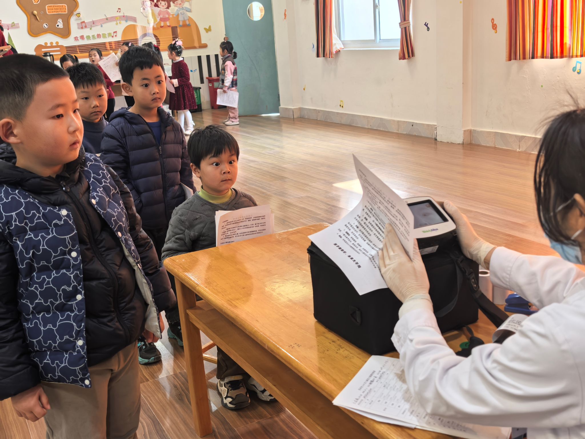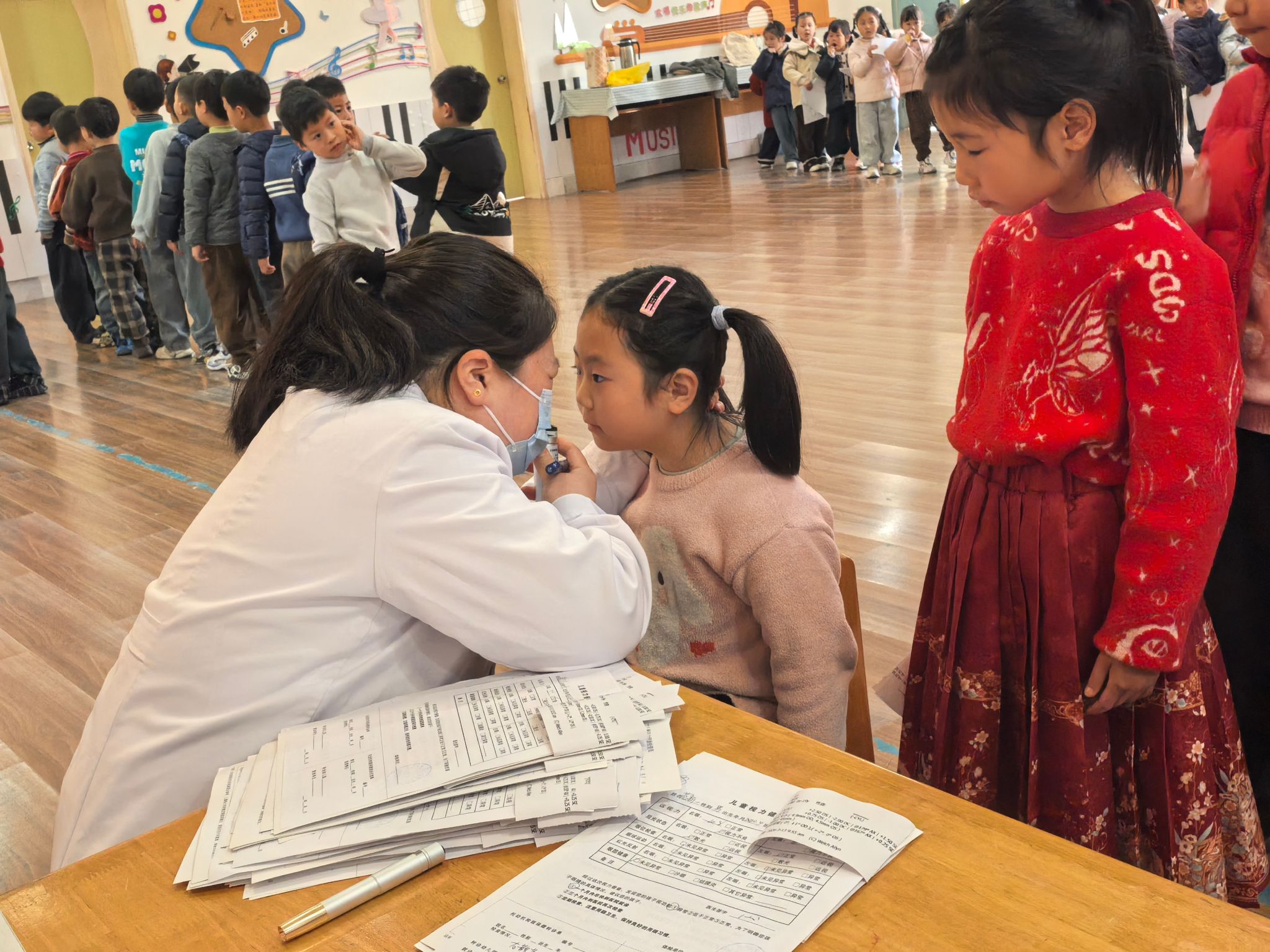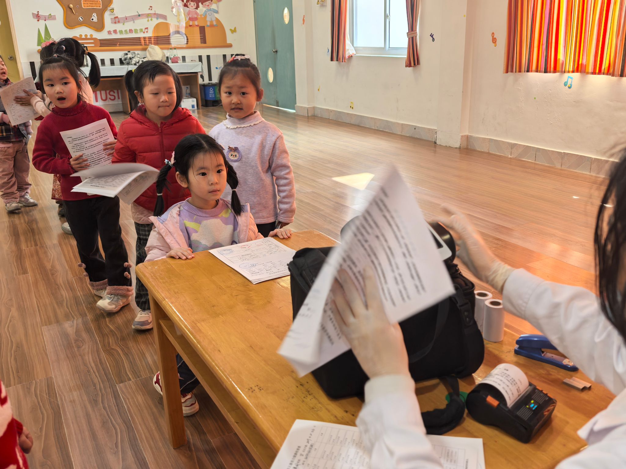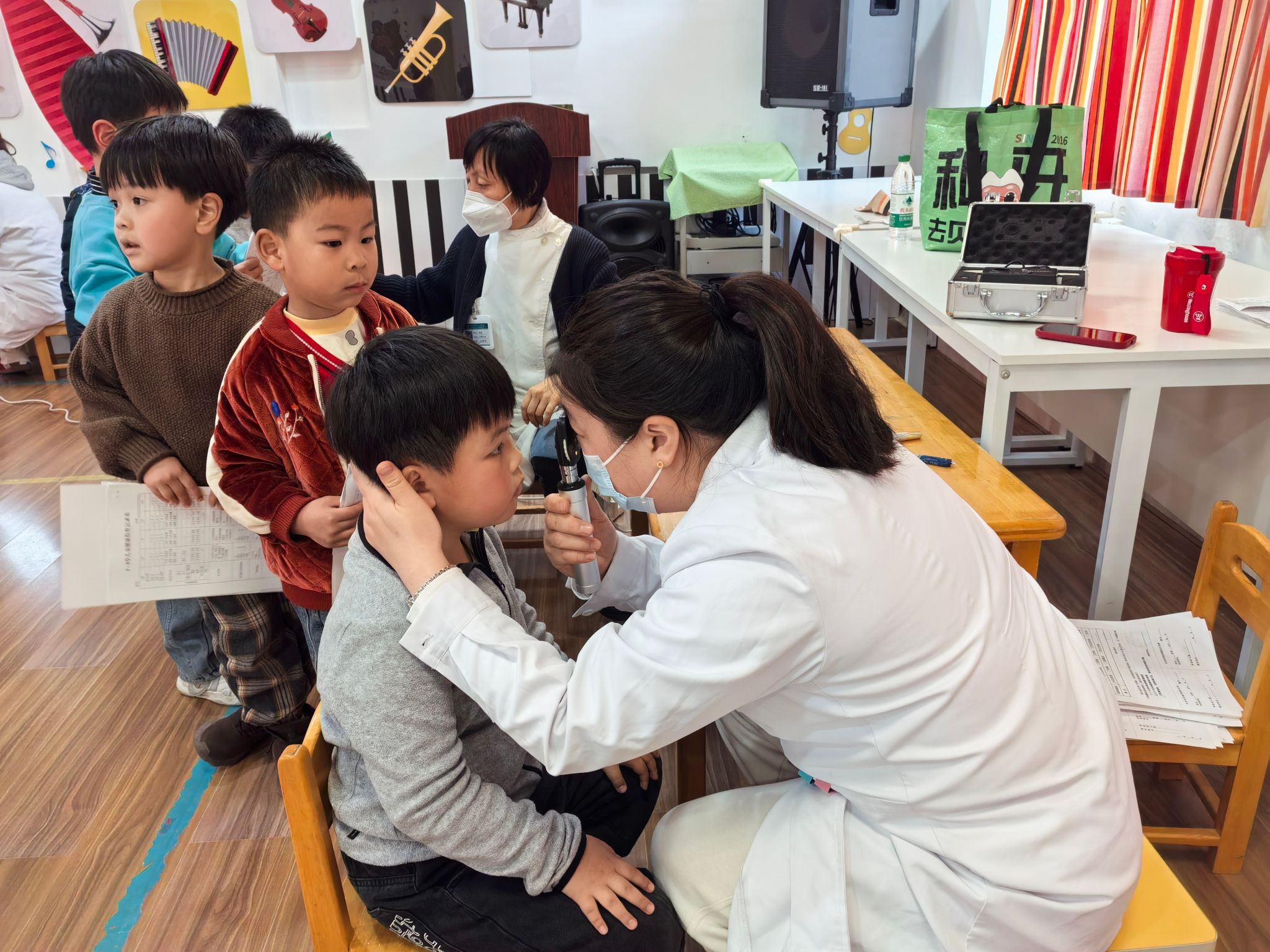 在老师的有序引导下,孩子们安静排队、积极配合,认真完成视力检测。医护人员与老师细致记录每一位幼儿的视力情况,用温和的语言鼓励孩子,让检查过程轻松又安心。同时,老师们结合本次检查,开展护眼小课堂:教孩子正确坐姿、少看电子产品、多到户外远眺、保证充足睡眠,把爱眼护眼知识融入日常。