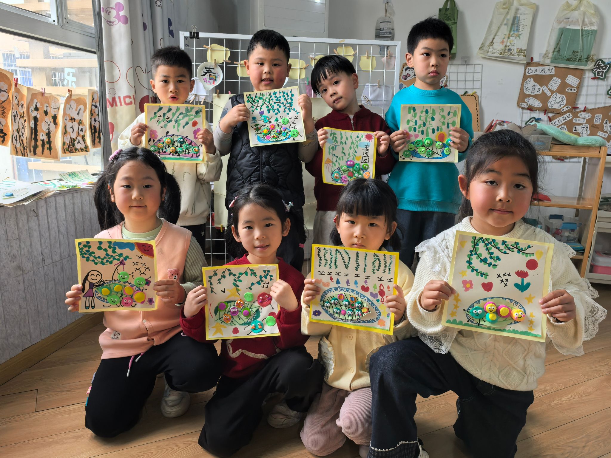 ——有的给青团画上了可爱的表情,有的在青团旁边画上了小草、小花,一幅幅充满童趣的作品,承载着孩子们对节日的喜爱。