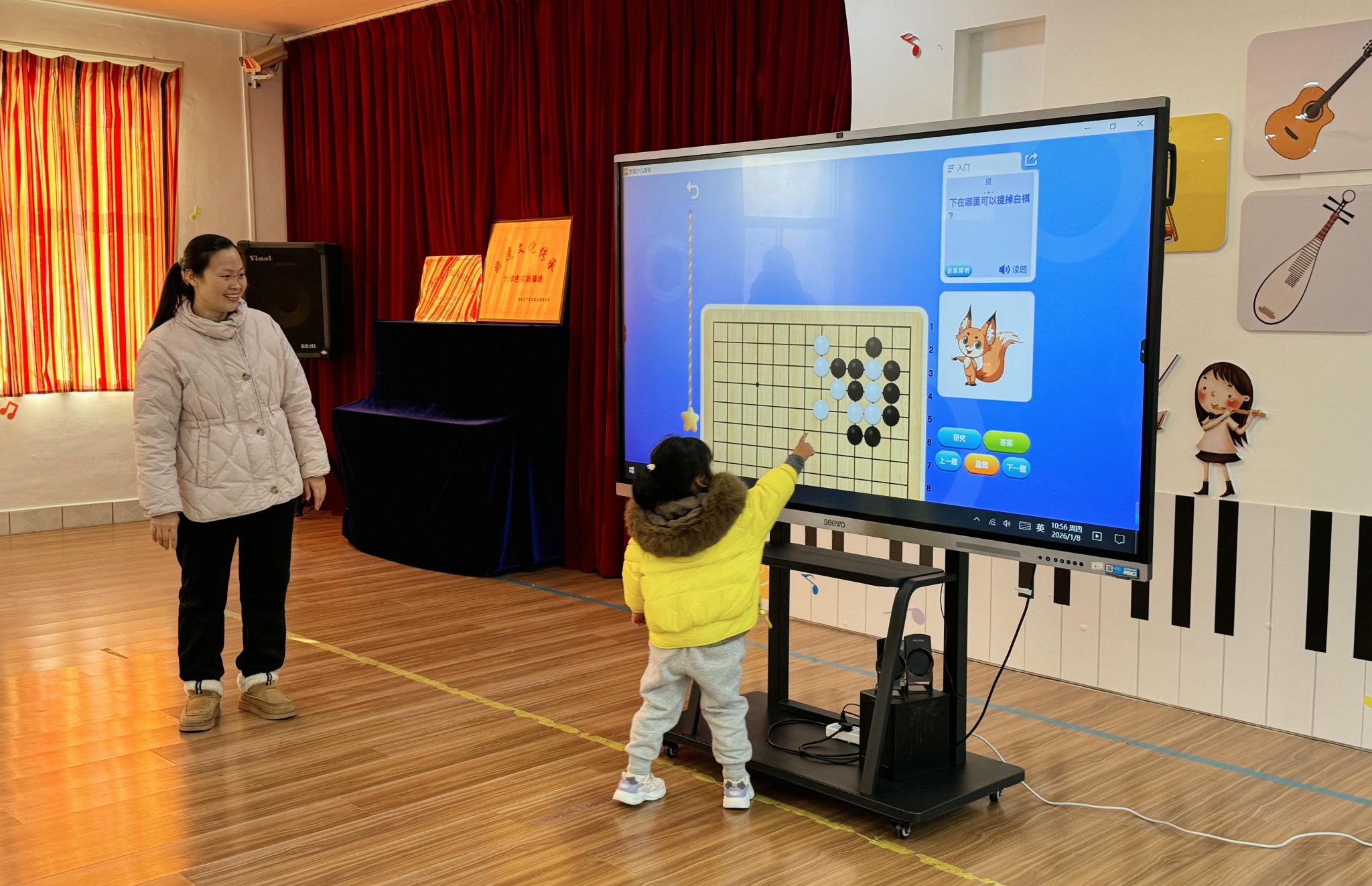 为激发幼儿逻辑思维与专注力,感受传统棋艺的文化魅力,中二班开展了趣味围棋公开课活动。老师以卡通化棋子、互动小游戏拆解围棋基础规则,孩子们在轻松氛围中认识棋盘、学习落子,在举手对弈、同伴交流中锻炼思考力与规则意识。家长们近距离观摩课堂全程,见证孩子的逻辑思维与社交表达同步提升。此次公开课以棋为媒,既让传统棋艺浸润童真,也拉近了家园距离,为后续家园协同助力幼儿全面成长奠定温馨基础。小小棋盘藏大智慧,本次活动让传统棋艺走进童真课堂,既培养了幼儿的耐心与专注力,也在萌娃心中播下传统文化与理性思维的种子,收获满满成长与乐趣。