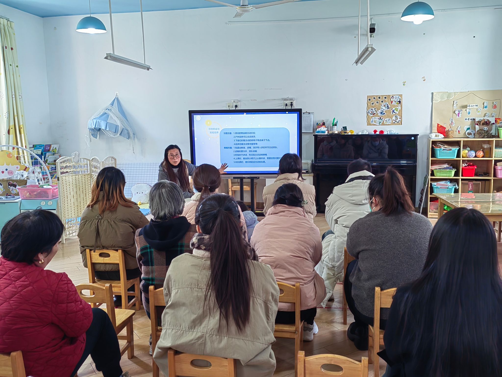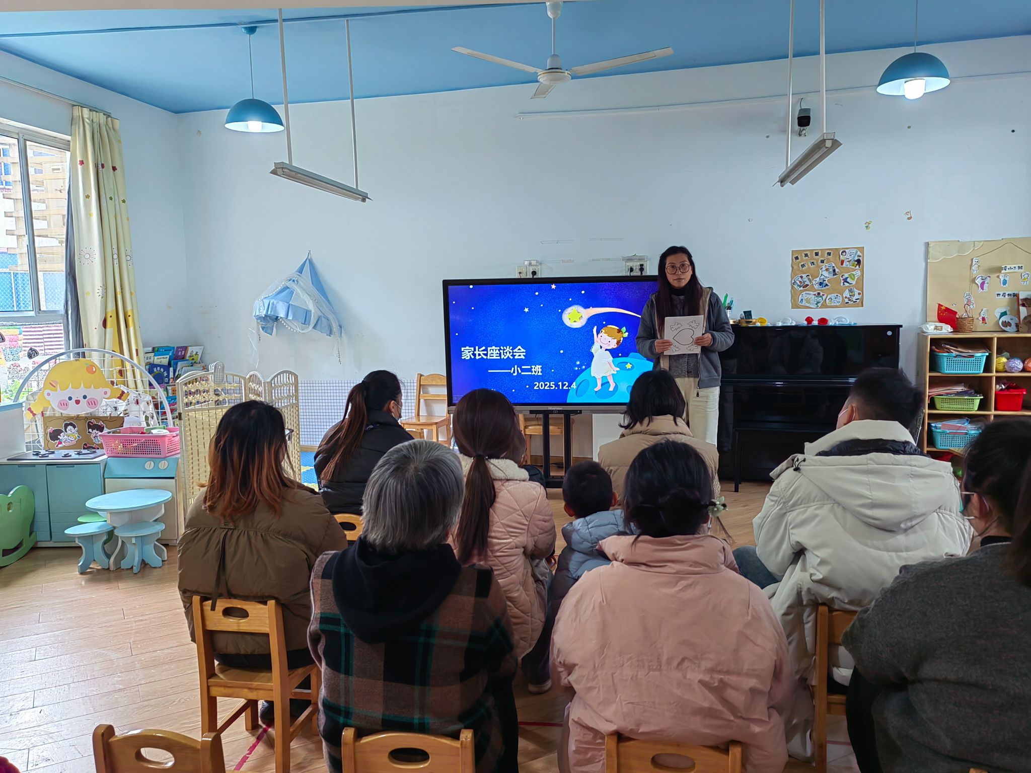 2025年12月4日下午,我班召开了秋季家长座谈会。沈老师围绕班级情况、生活能力和行为习惯的培养、家园共育等一系列内容展开了详细的介绍。针对小班幼儿的年龄特点和发展目标,让家长充分了解班级开展教育的具体措施和方法,使家长明确家园共育的重要性,积极主动支持、配合幼儿园工作,共同助力孩子成长。