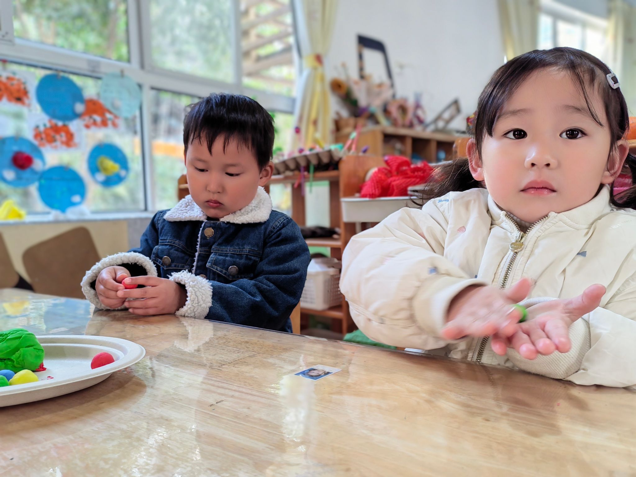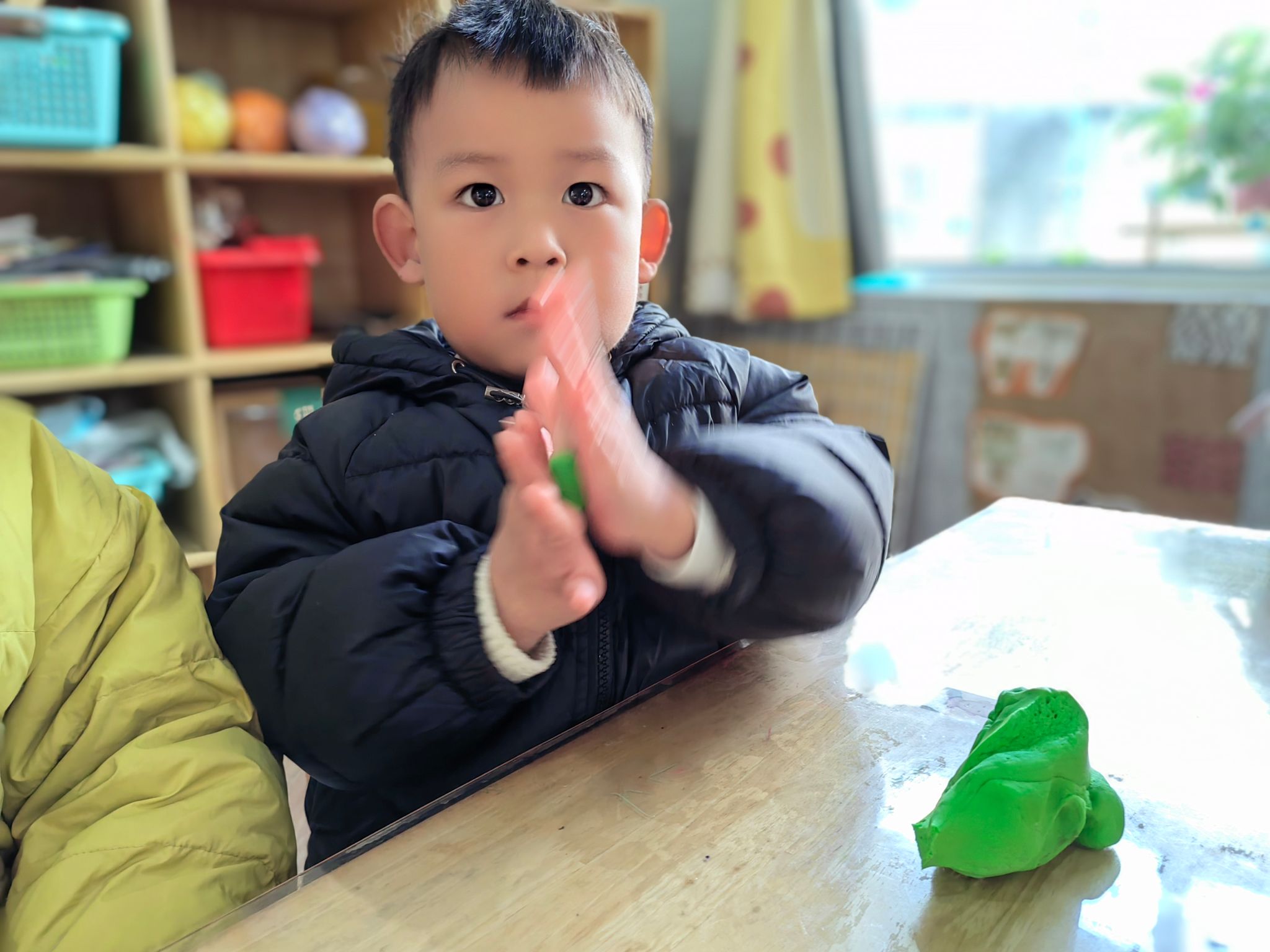 冬至圆,搓汤圆。瞧,孩子们正在搓汤圆呢,一个个忙得不亦乐乎。一眨眼的功夫,一颗颗大小不一、扁的鼓的汤圆从孩子们的小手里变了出来。